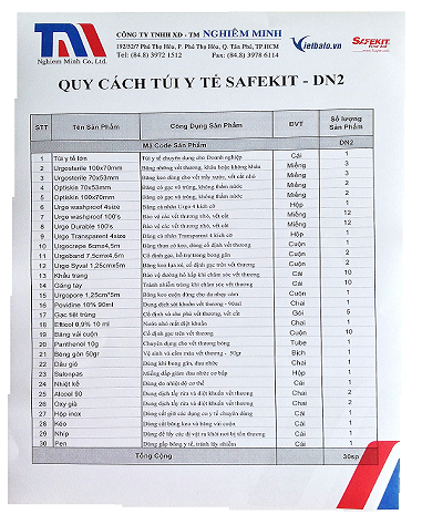 SAFEKIT DN2 - Túi gồm 30 sản phẩm, thích hợp cho văn phòng, Công ty, Truờng học. Túi đuợc thiết kế chuyên nghiệp, năng động, dễ di chuyển. Sơ cấp cứu mọi lúc mọi nơi. Bảo vệ sức khỏe con nguời, như bảo vệ tài sản doanh nghiệp.
